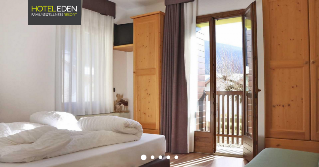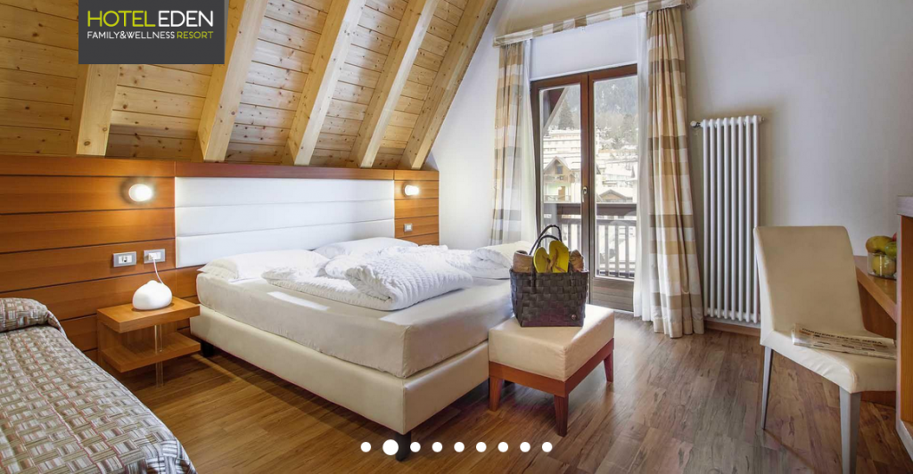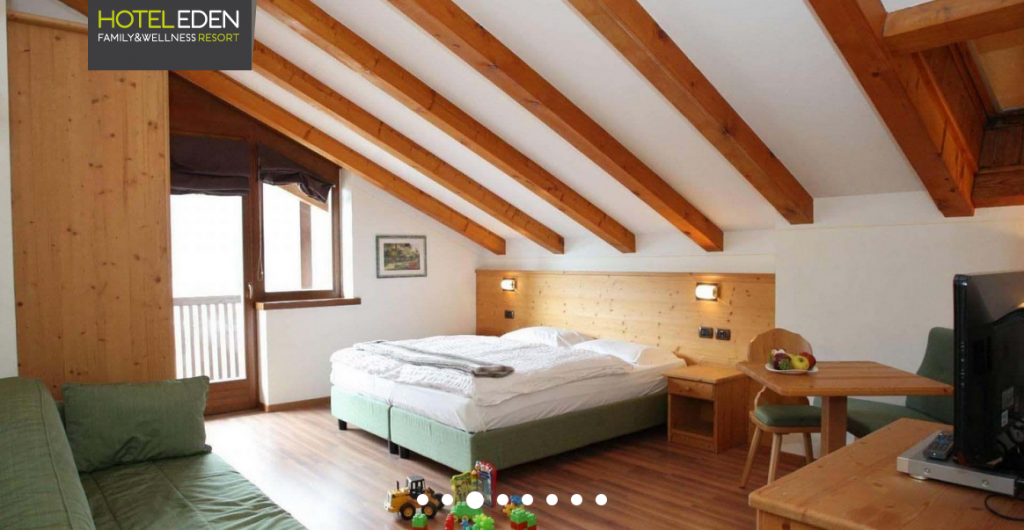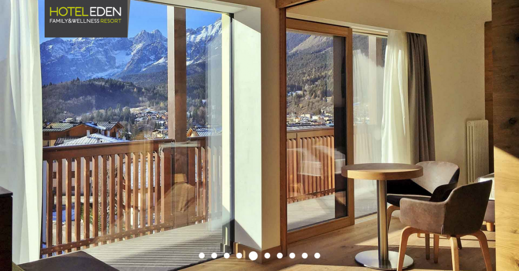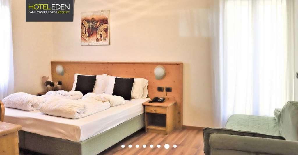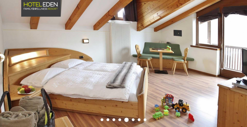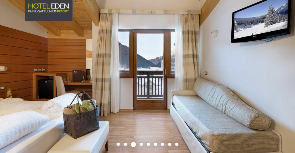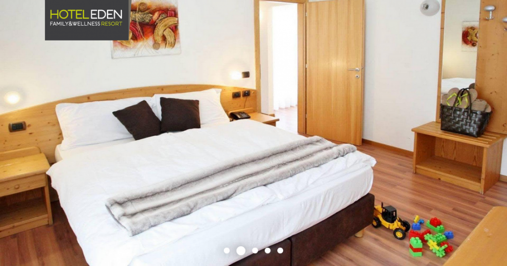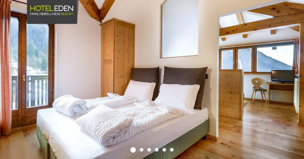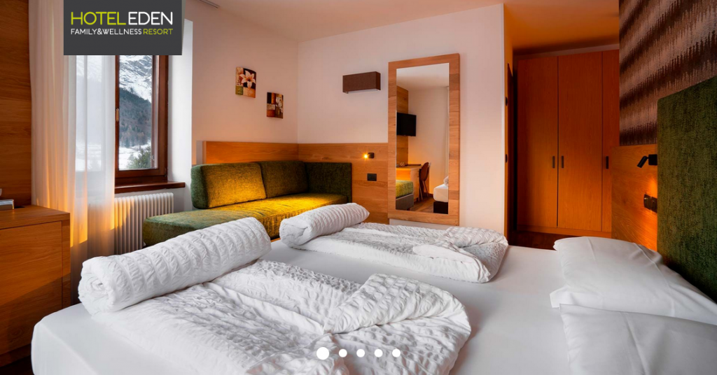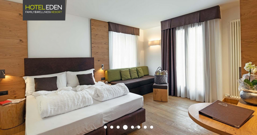 Przestronny i wygodny pokój dla 3-4 osób. Umeblowany w alpejskim stylu z dodatkami drewna jodłowego. Z okien i balkonu roztacza się wspaniały widok na Dolomity Brenta. Wyposażony jest w telefon, telewizję, minibar, sejf oraz do dyspozycji gości są także szlafroki i kapcie do Eden Spa. Łazienka wyposażona jest w prysznic lub wannę (w niektórych pokojach z hydromasażem).