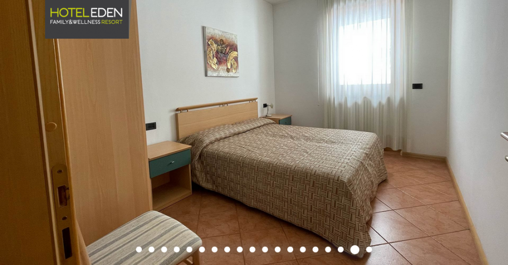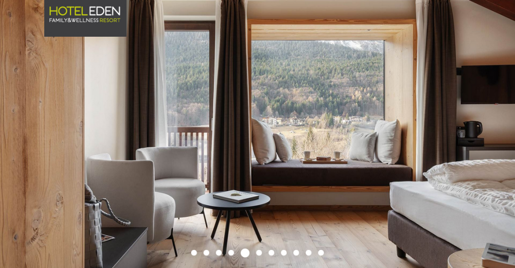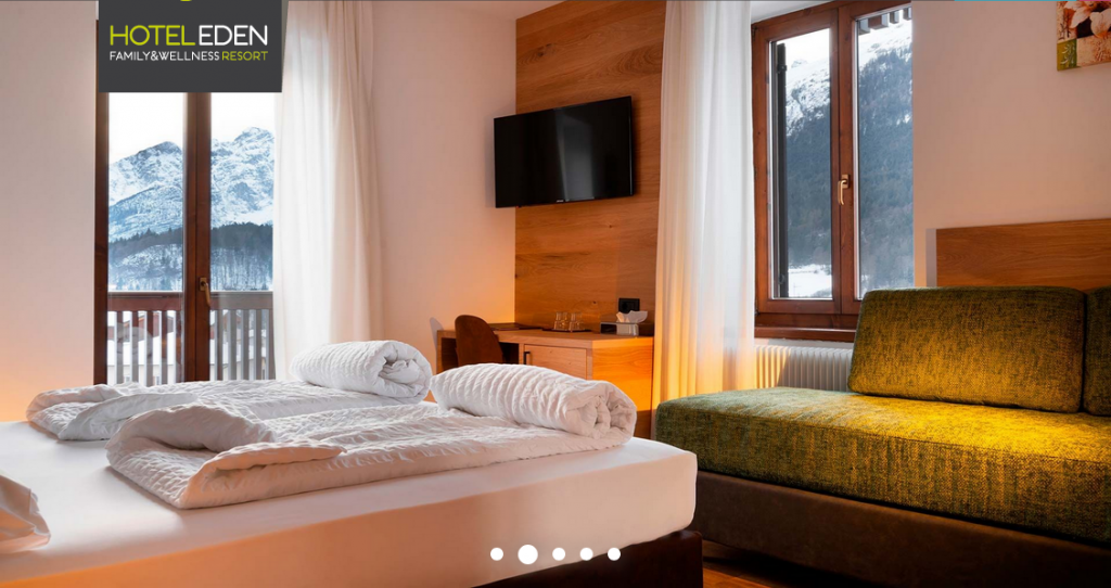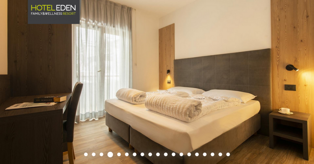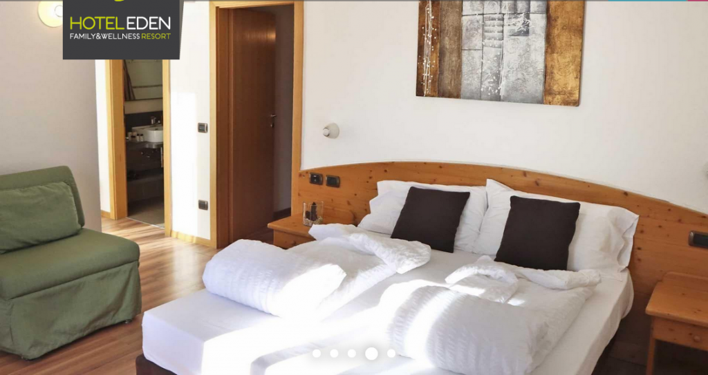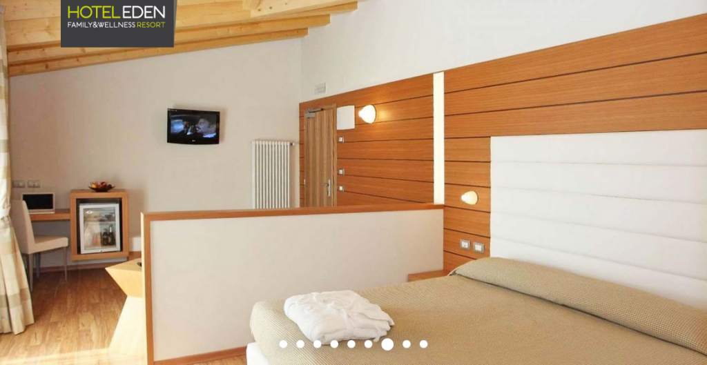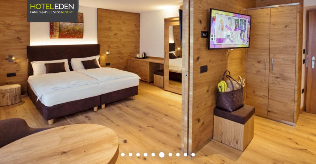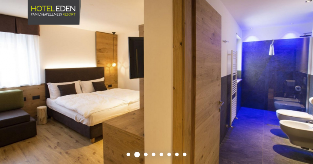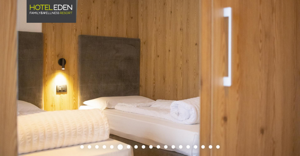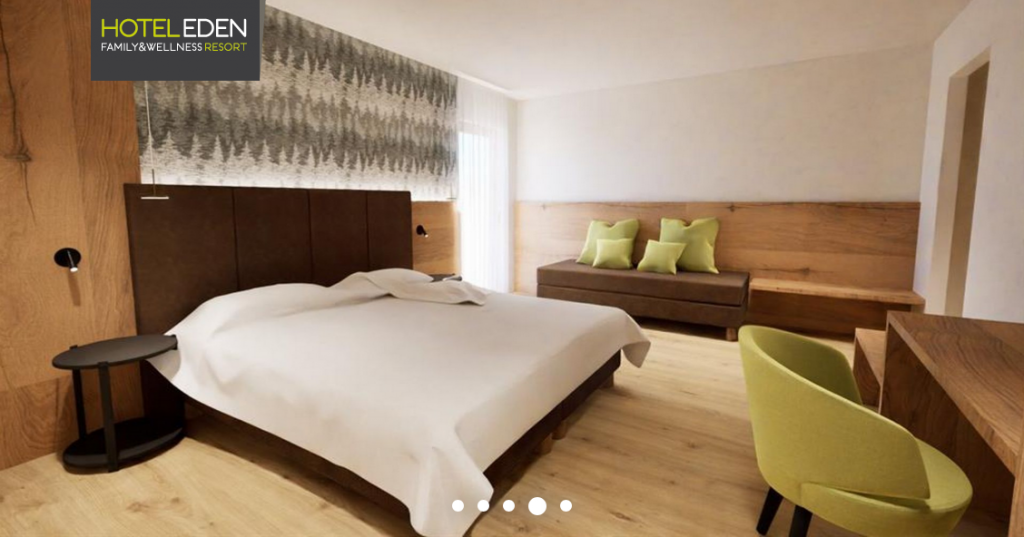 Przestronny i wygodny pokój dla 3-4 osób. Umeblowany w alpejskim stylu z dodatkami drewna jodłowego. Z okien i balkonu roztacza się wspaniały widok na Dolomity Brenta. Wyposażony jest w telefon, telewizję, minibar, sejf oraz do dyspozycji gości są także szlafroki i kapcie do Eden Spa. Łazienka wyposażona jest w prysznic lub wannę (w niektórych pokojach z hydromasażem).