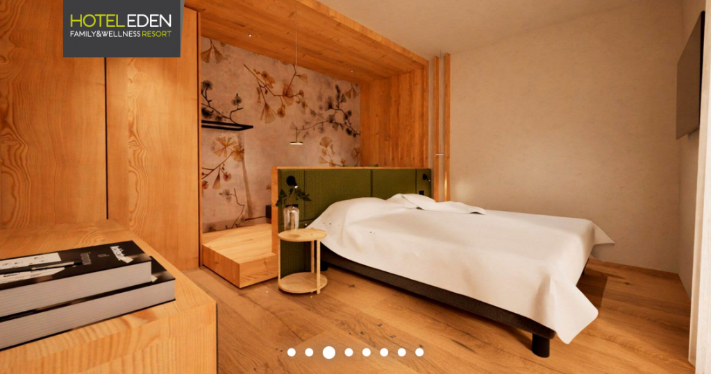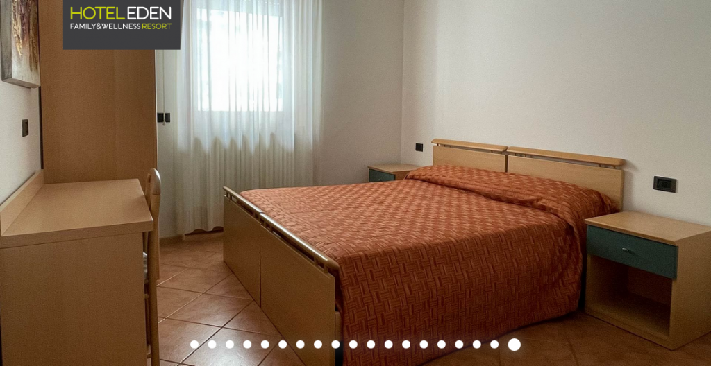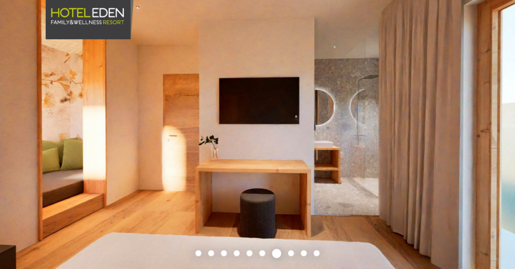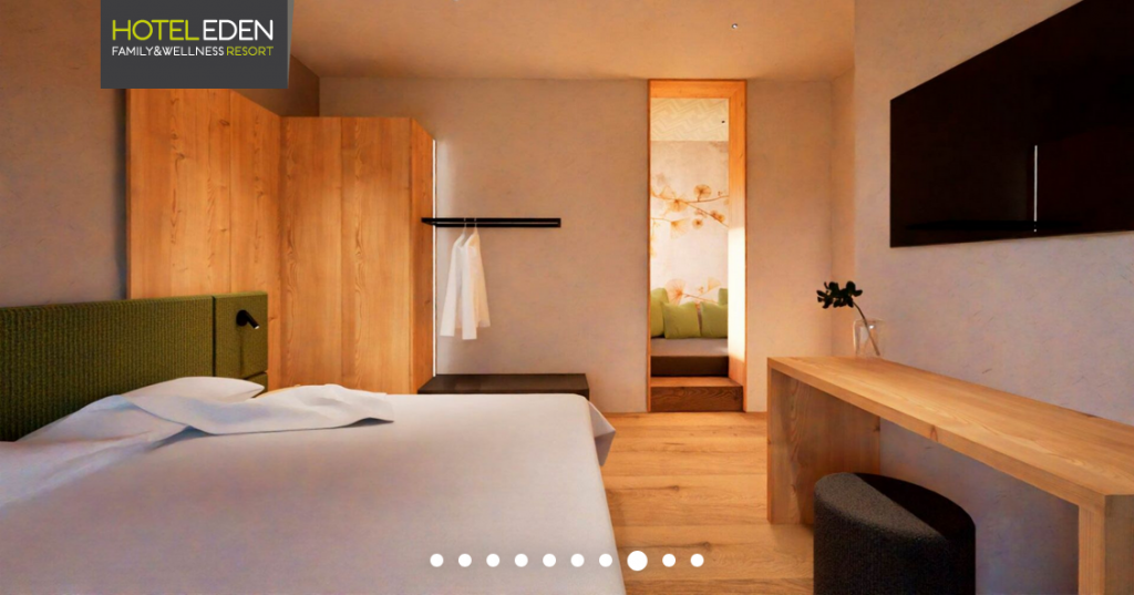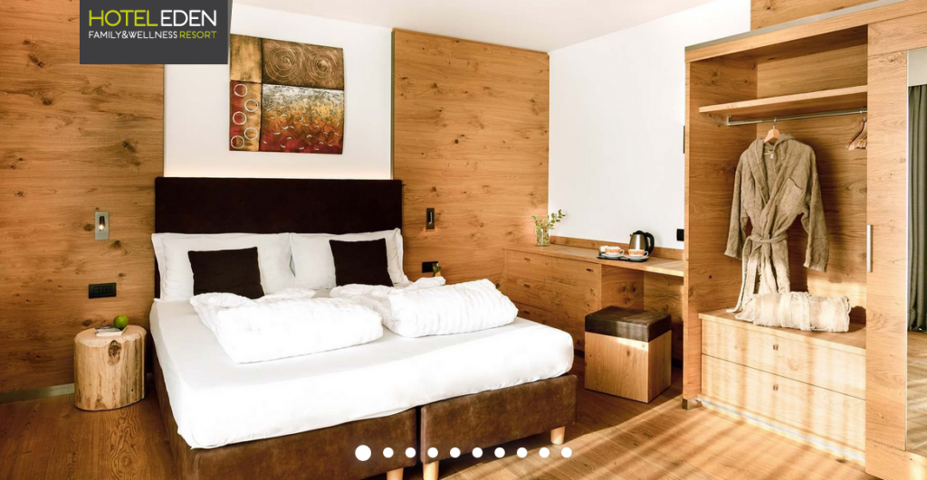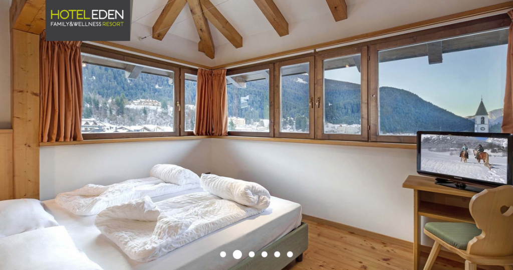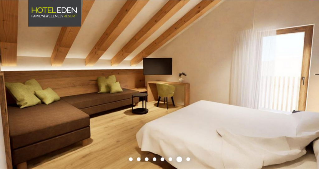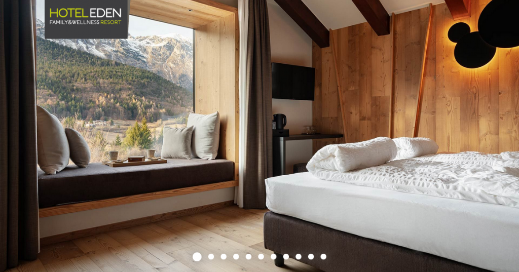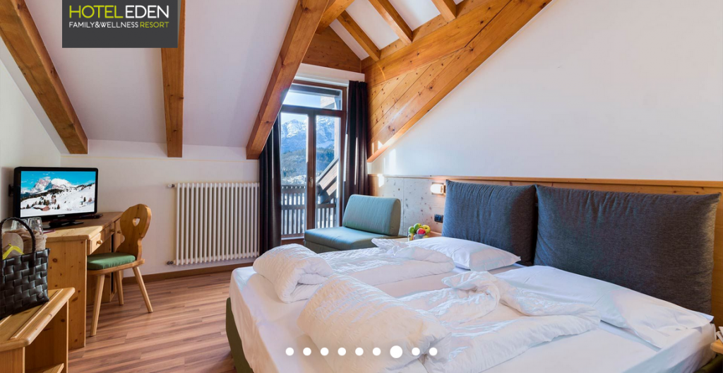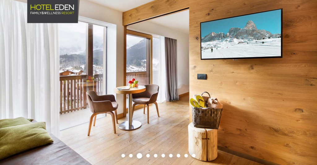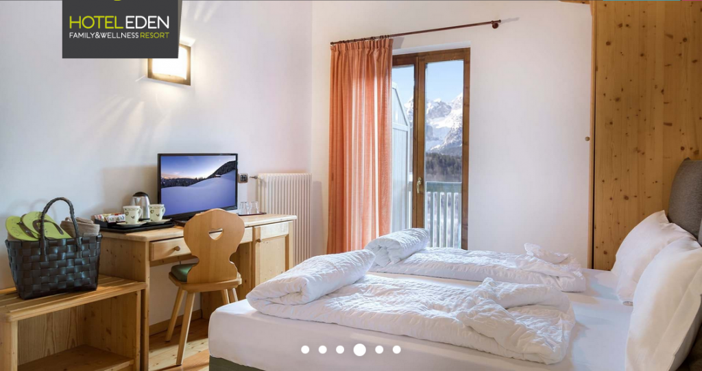 Przestronny i wygodny pokój dla 3-4 osób. Umeblowany w alpejskim stylu z dodatkami drewna jodłowego. Z okien i balkonu roztacza się wspaniały widok na Dolomity Brenta. Wyposażony jest w telefon, telewizję, minibar, sejf oraz do dyspozycji gości są także szlafroki i kapcie do Eden Spa. Łazienka wyposażona jest w prysznic lub wannę (w niektórych pokojach z hydromasażem).