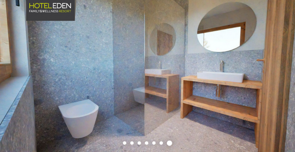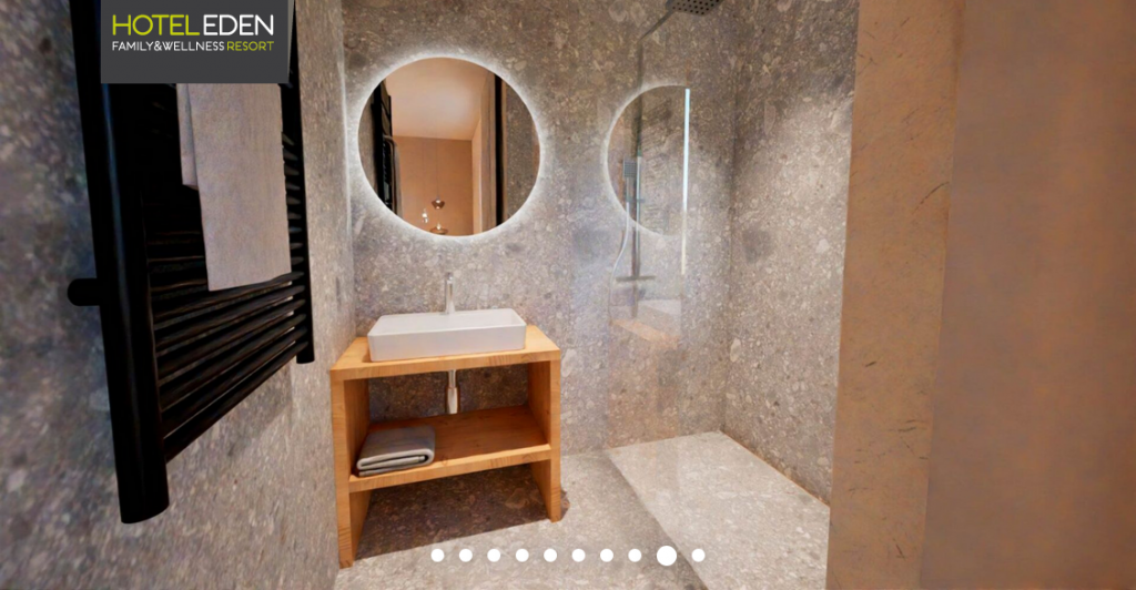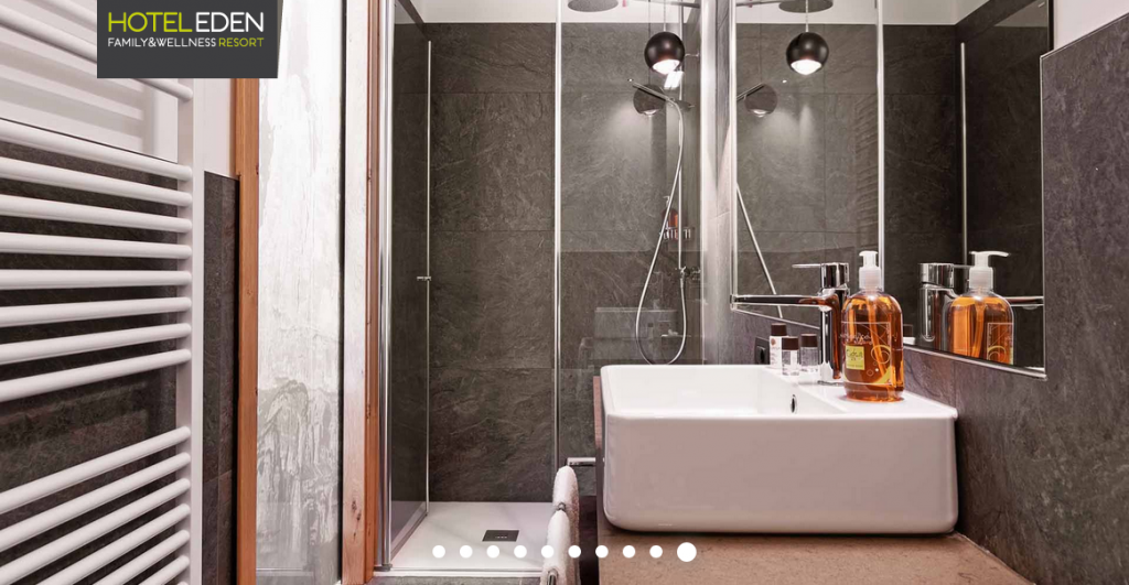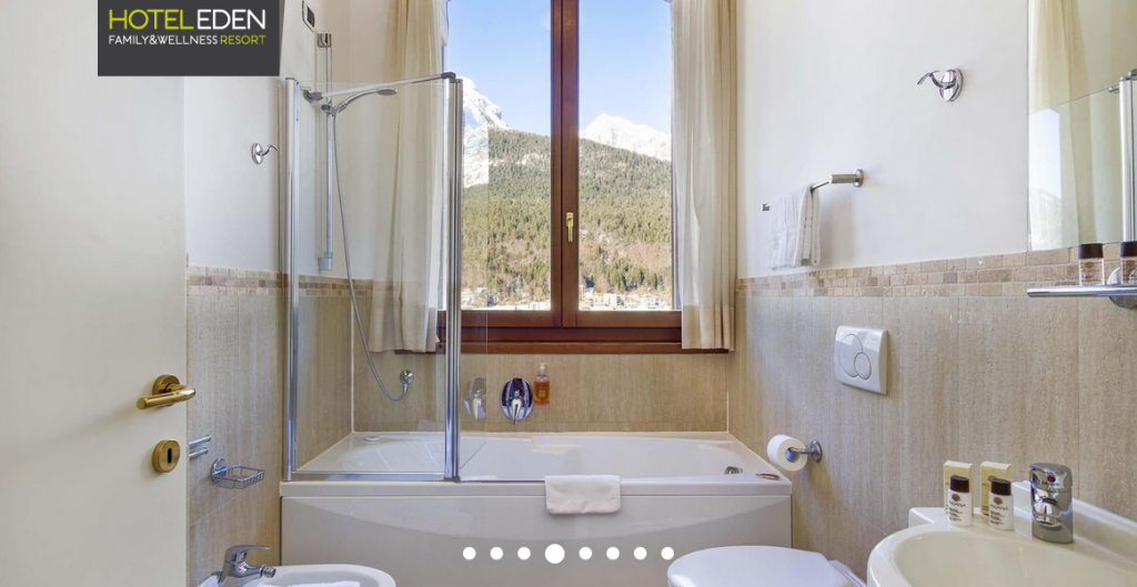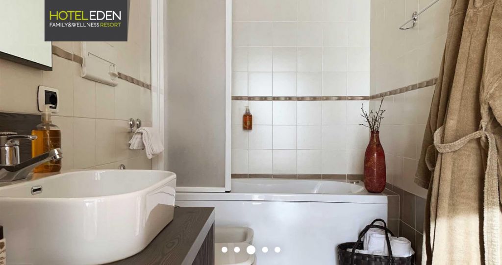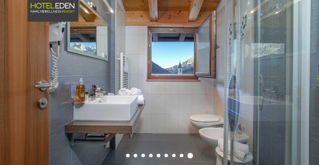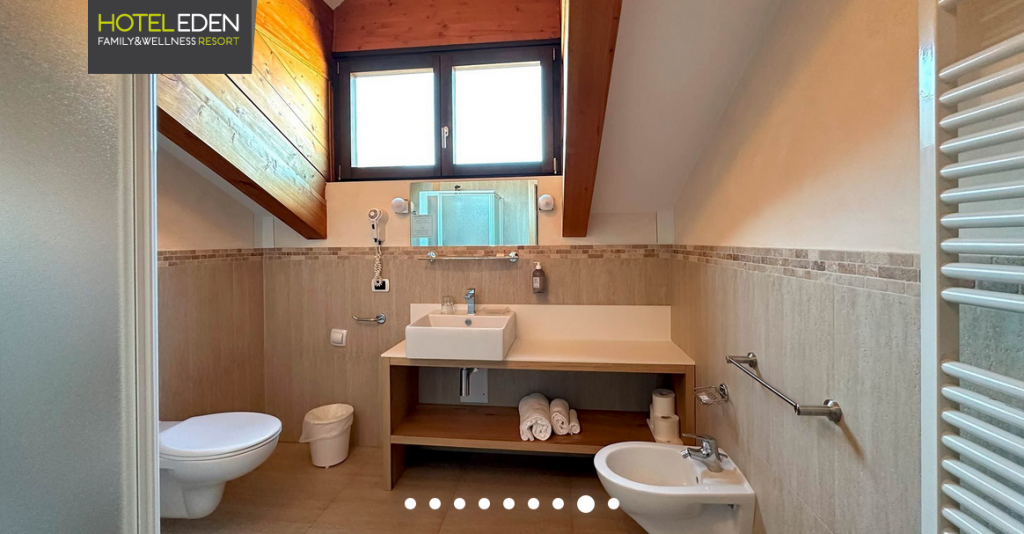 Nowy apartament z dwoma oddzielnymi pokojami i dużą łazienką z prysznicem, urządzony w nowoczesnym alpejskim stylu, z drewnianą podłogą i parkietem. Pokój dwuosobowy z przeszklonym salonem i balkonem z zapierającym dech w piersiach widokiem na Dolomity Brenta. Pokój dzienny z trzecim i czwartym łóżkiem. Wyposażenie obejmuje telefon, 2 telewizory i sejf. Dla Gości przygotowano również szlafroki i kapcie do spa Eden.